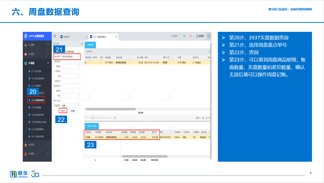 目录 搜索 模块操作手册01 主档ISCS_0103 商品查询ISCS_0105批量操作ISCS_0115 类别管理ISCS_0120 标签管理ISCS_0135 供应商查询ISCS_0136 订货参数维护ISCS_0138 排面参数维护ISCS_0125 收银员ISCS_0140 团购客户维护ISCS_0151 商品管理ISCS_0160 供应商管理ISCS_0137 订货参数查询ISCS_0145 产地修改ISCS_0155 排面参数查询ISCS_0165 标签批量维护ISCS_0170 渠道商品信息ISCS_0175 线上分类商品03 配方ISCS_0320配方维护iscsISCS_0330 配方原料成本查询ISCS_0325产能维护iscs05 营运ISCS_0502 普通促销ISCS_0503 临保促销ISCS_0505 特殊促销ISCS_0504 普通变价ISCS_0507 价格变动查询ISCS_0510 牌卡打印ISCS_0515 限量使用ISCS_0520 PLU导出ISCS_0521 追溯码维护ISCS_0525 数据同步ISCS_0568 价格轨迹查询ISCS_0571 收银操作日志查询ISCS_0555 竞争价ISCS_0588 关账确认ISCS_0560 特殊促销查询ISCS_0570 收银录入ISCS_0573 每日高销量预警报表ISCS_0575 零库存缺货原因报表ISCS_0580 普通促销V2ISCS_0508 促销终止ISCS_0565 临保促销查询ISCS_0569 牌卡价格变动查询ISCS_0590 收银设备查询10 销售ISCS_1001 销售单据ISCS_1002 交易小票ISCS_1005 商品排行ISCS_1006 单品销售ISCS_1010 支付排行ISCS_1020 分类销售ISCS_1025 时段销售ISCS_1035 收银查询.ISCS_1040 交易流水.ISCS_1061 批发团购ISCS_1065 香烟销售ISCS_1071 收银日结单ISCS_1072 收银实收单ISCS_1075 收银日期汇总ISCS_1087 实时销售汇总ISCS_1088 日结销售汇总.ISCS_1089 线上订单查询ISCS_1073 门店收银日期汇总ISCS_1080 单店日销售查询ISCS_1085 销售拣货查询V2ISCS_1092 后台销售iscs12 履约1201 履约管理1202 履约任务面板1210 订单履约综合管理15 要货ISCS_1502 补货计划ISCS_1553 自动补货审批ISCS_1554 自动补货审批V2ISCS_1565 手工补货V2ISCS_1566 按供应商补货ISCS_1555 自动补货历史查询ISCS_1503 缺货报表查询ISCS_1567 补货计划查询V216 补差ISCS_1601 补差申请V220 采购ISCS_2002 采购订单查询ISCS_2003 直送订单查询ISCS_2006 采购订单综合查询ISCS_2021 采购到货满足率ISCS_2035 建议订单修改率报表25 进货ISCS_2500 出入库单据查询ISCS_2502 指令单据查询ISCS_2506 订单进货ISCS_2511 配送进货ISCS_2518 特殊直接进货ISCS_2540 赠品进货ISCS_2545 出入库单据审核ISCS_2550 进货单据查询ISCS_2551 进货单据汇总查询ISCS_2555 配送到货差异查询ISCS_2560 联营进货V2ISCS_2563 预检录入V2ISCS_2565 按订单进货V2ISCS_2570 配送进货V2ISCS_2526 直接进货V226 调拨ISCS_2605 调入申请ISCS_2606 调出申请ISCS_2607 调入审核ISCS_2608 调出审核ISCS_2618 调拨状态ISCS_2620 单向调出申请30 退货ISCS_3036 订单退货ISCS_3041 直接退货ISCS_3046 配送退货ISCS_3051 调拨出库ISCS_3006 退货申请ISCS_3002 清场商品查询ISCS_3050 退货申请V2ISCS_3053 退货通知单查询ISCS_3052 出库指令查询ISCS_3055 按订单退货V2ISCS_3065 退货装箱ISCS_3070 退货装箱对照ISCS_3075 退货交接ISCS_3060 直接退货V235 盘点ISCS_3531 盘点设置ISCS_3532盘点商品清单ISCS_3535实盘维护ISCS_3536 盘点扫描记录ISCS_3538 实盘调整ISCS_3540 盘点差异报告ISCS_3550 盘点报告(含月盘)ISCS_3555 实盘数据导出ISCS_3560 盘点切换数据ISCS_3565 大类盘点报告ISCS_3570 未上架商品查询ISCS_3575 盘点汇总差异报告 40 库存ISCS_4065 库存状况汇总.ISCS_4066 供应商库存状况ISCS_4067 供应商库存状况ISCS_4068库存明细查询ISCS_4069 库存流水ISCS_4080 库存检查ISCS_4007 损溢作业ISCS_4008 加工作业.ISCS_4009 换货作业ISCS_4011 耗材领用ISCS_4018 移库作业ISCS_4019 补损作业.ISCS_4022 赠品补损ISCS_4075 加工单据查询ISCS_4076 库存调整单据查询.ISCS_4077 库存调整明细查询ISCS_4078 库存调整汇总查询ISCS_4072 库存三级账ISCS_4016 扣补单作业ISCS_4017 串货作业ISCS_4031 损溢作业V2ISCS_4033 赠品补损V2ISCS_4073 单品库存变动查询ISCS_4082 不可售库存维护ISCS_4092 备用库存维护ISCS_4095 特殊换货作业ISCS_4096 联营库存处理90 财务ISCS_9001 类别销售日报ISCS_9015 销售毛利日报表ISCS_9020 单品进销存日报表ISCS_9021 单店进销存汇总报表SAAS_9001 销售日报SAAS_9005 进销存日报SAAS_9010 销售税务日报SAAS_9015 商品毛利报表SAAS_9020 商品进销存日报表ISCS_9060 单品损溢原因报表ISCS_9065 单品损溢毛利报表ISCS_9070 财务损耗报表98 监控ISCS_9830要货订货传输查询11 合同ISCS_1110 合同条款查询ISCS_1113 未结算数据查询ISCS_1115 已结算数据查询ISCS_1118 结算日志查询ISCS_1120 财务月度查询用户操作手册新增商品要货进货盘点卖场操作手册培训资料更新日志01主档0103商品查询0115类别管理0125收银员0135供应商查询0137订货参数查询0136订货参数维护0138排面参数维护0140团购客户维护0145产地修改0155排面参数查询0165标签批量维护03配方0320配方维护iscs05营运0502普通促销0503临保促销0504普通变价0505特殊促销0510牌卡打印0520PLU导出0521追溯码维护0525数据同步0588关账确认0560特殊促销查询0568价格轨迹查询0570收银录入0580普通促销V20508促销终止0565临保促销查询0569牌卡价格变动查询手持临保操作培训资料10销售1005商品排行1010支付排行1002交易小票1006单品销售1020分类销售iscs1025时段销售iscs1035收银查询1040交易流水iscs1061批发团购1071收银日结单1087实时销售汇总1088日结销售汇总15要货1566按供应商补货V21555自动补货历史查询1554自动补货审批V216补差20采购2002采购订单查询2003直送订单查询2006采购订单综合查询25进货直送配送收货2563预检录入2563预检录入(新)2560联营进货V22540赠品进货中仓常温无纸化收货26调拨30退货中仓退货直送供应商退货中仓退货